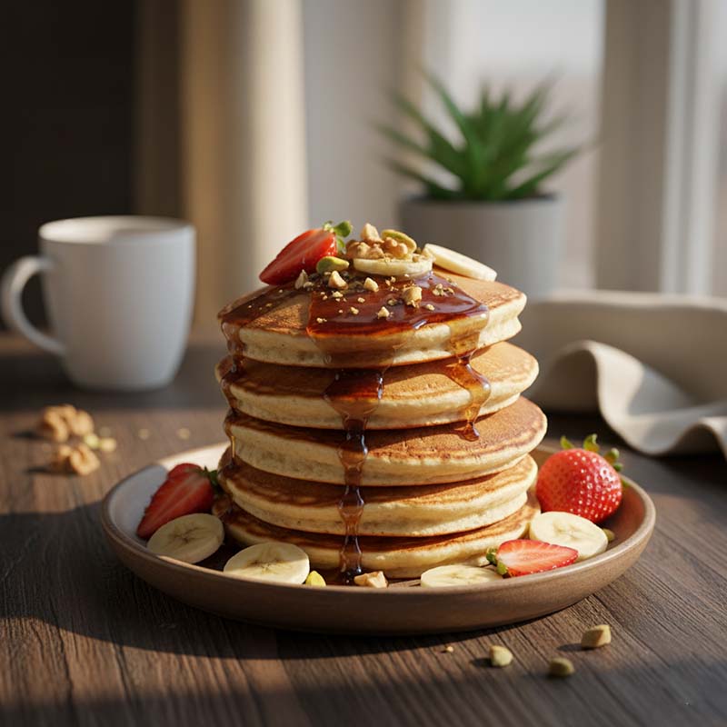 🍯 ۲. پنکیک صبحانه با شیره خرما و انگور